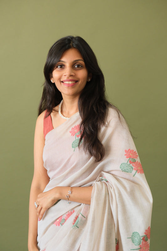 MEADOW MUSE- Light Green Floral Pure Chanderi Slub Unstiched Suit Set