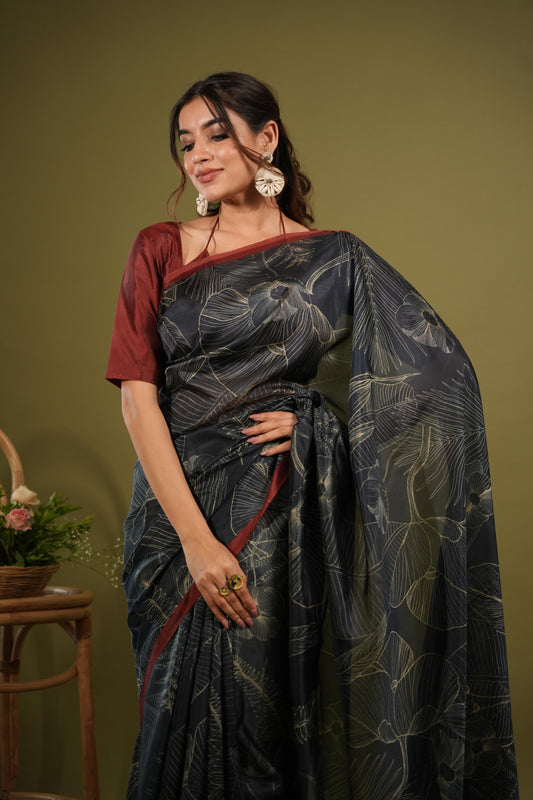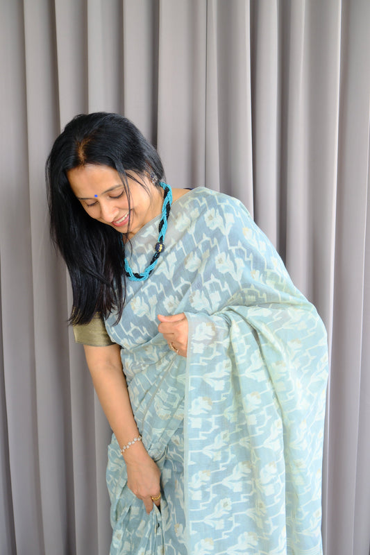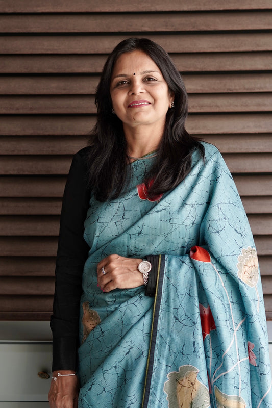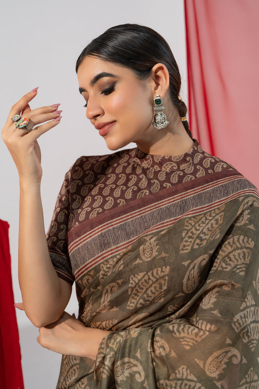 SUNDARBAGH- Green Fusion Print Tussar Silk Saree