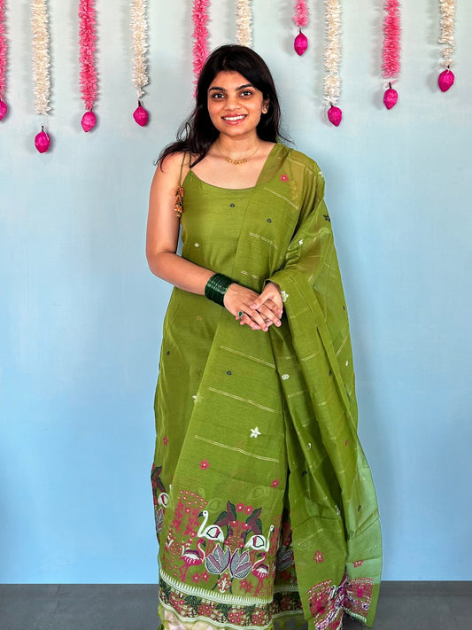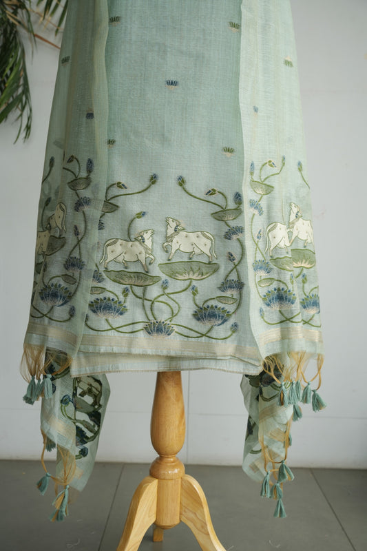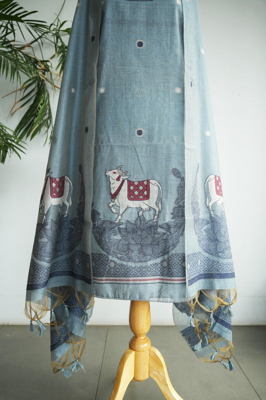 AQUA LEELA - Pure Chanderi Slub Pichwai Unstitched Suit Set