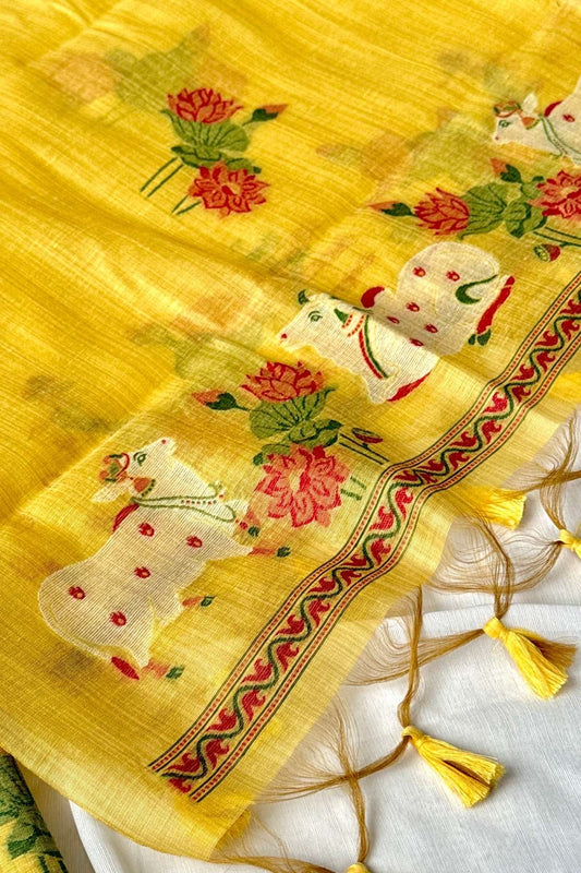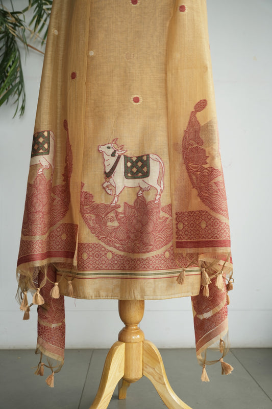 NEEL KAMAL- Pure Chanderi Slub Pichwai Unstitched Suit Set