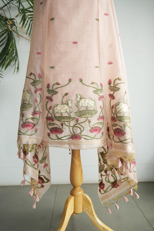 GULABI LEELA - Pure Chanderi Slub Pichwai Unstitched Suit Set