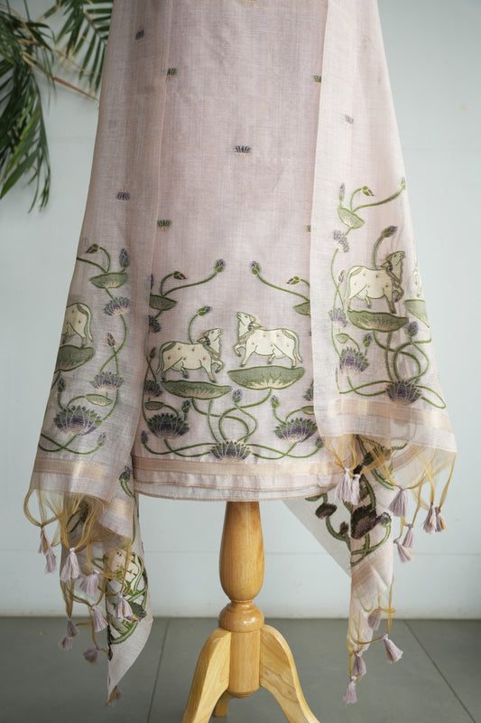 LILAC NOOR - Pure Chanderi Slub Pichwai Unstitched Suit Set