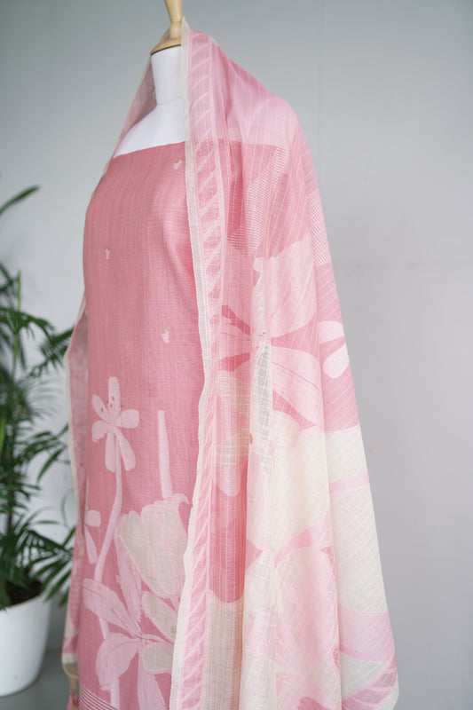 GULMOHAR - Floral Weaving Monga Cotton Unstitched Suit Set