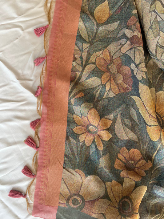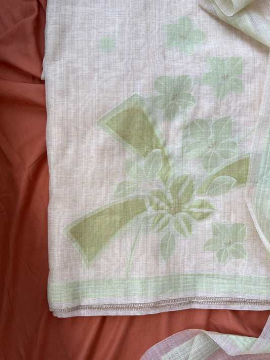 MINT BLOOM- Floral Weaving Monga Cotton Unstitched Suit Set
