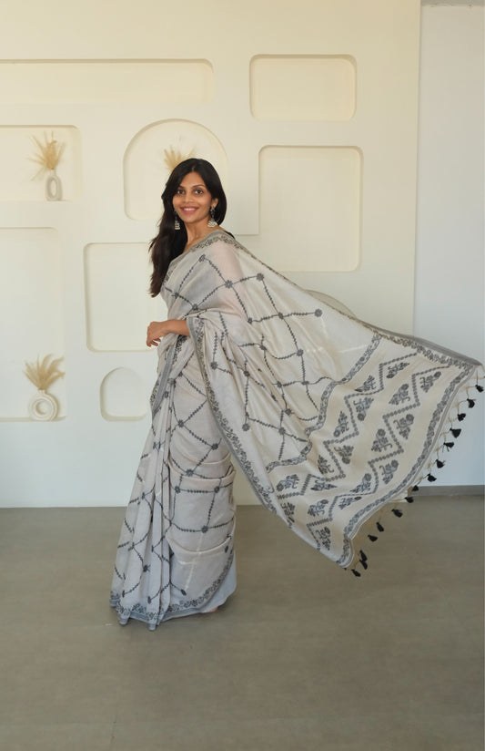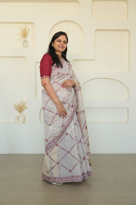 RANG- GULZAR - Chanderi Cotton Geometric Floral Saree