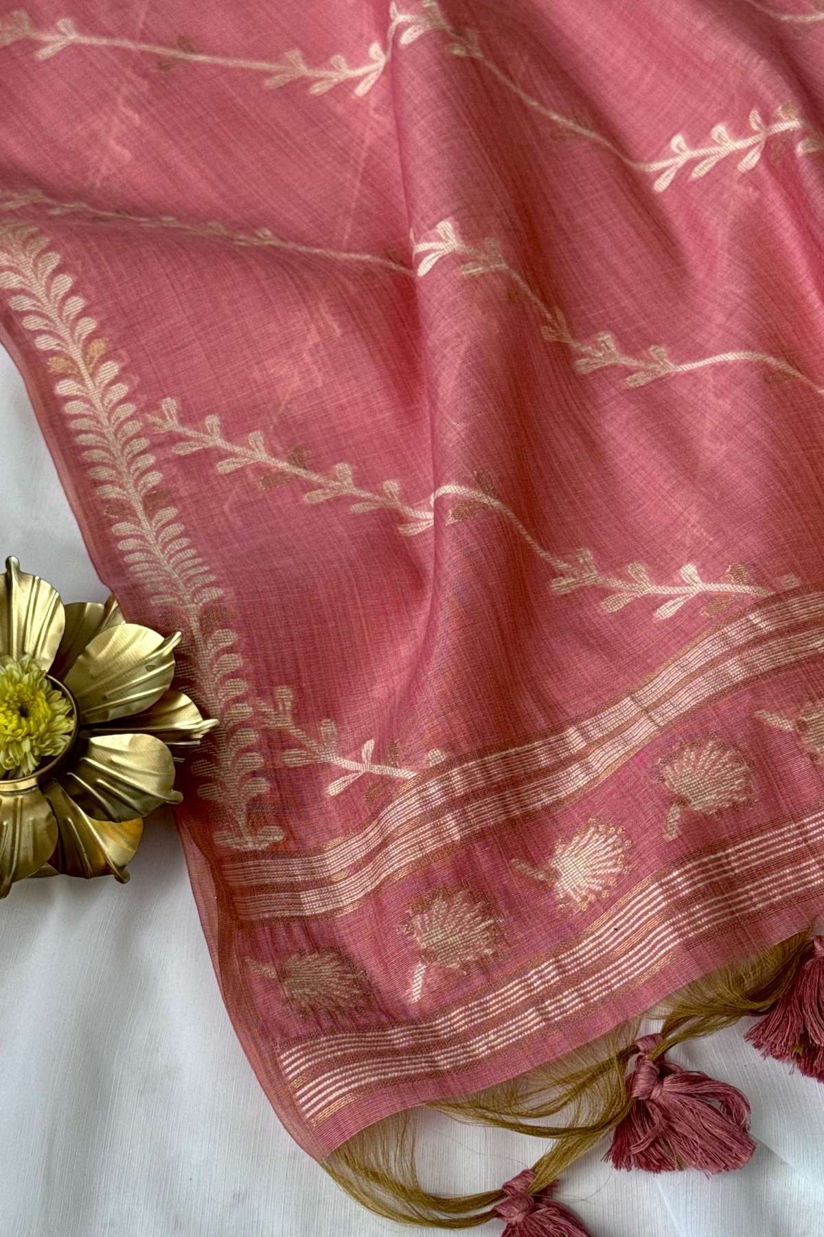 Embrace the beauty of delicate florals with our 'Pink Petals' suit set. Crafted from luxurious handloom chanderi, this pink ensemble features intricate floral weaves that add a touch of elegance and grace. Lightweight, breathable, and effortlessly chic.